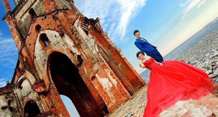 Nhiều đôi bạn trẻ chụp ảnh cưới tại nhà thờ đổ (ảnh sưu tầm)