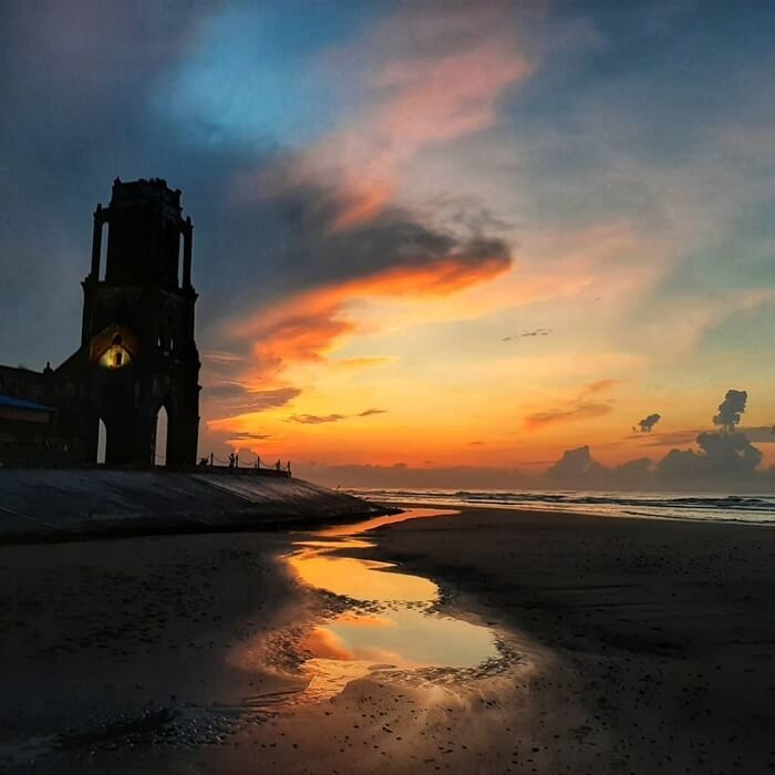 Cảnh bình minh trên biển tại nhà thờ đổ (ảnh sưu tầm)