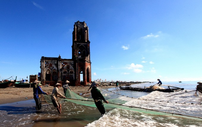 Nét đặc trưng độc đáo của bờ biển Hải Hậu là những nhà thờ đã bỏ hoang nằm nhuốm màu thời gian, nổi tiếng nhất phải kể đến nhà thờ đổ tạo nên khung cảnh đẹp và yên bình đến lạ.