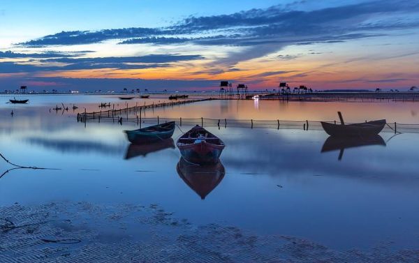 Biển Đồng Châu - Thái Bình mang một vẻ đẹp bình yên và đầy thơ mộng với những căn nhà gỗ chênh vênh giữa biển, những chiếc thuyền cá của ngư dân neo đậu trong ánh hoàng hôn rực lửa.