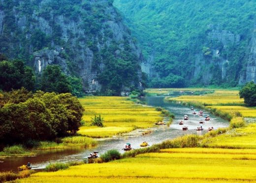 Mùa hạ là mùa lúa chín đẹp nhất khu Tam Cốc - Bích Động, đến đây bạn sẽ được chiêm ngưỡng những cánh đồng lúa vàng óng, trải dài uốn lượn theo dòng sông thơ mộng.Chèo thuyền dọc con sông mùa này bạn còn được cảm nhận hương lúa chín ngào ngạt, đắm chìm vào bức tranh phong cảnh thiên nhiên hữu tình với cả núi nong, sông nước và màu vàng của lúa chín.