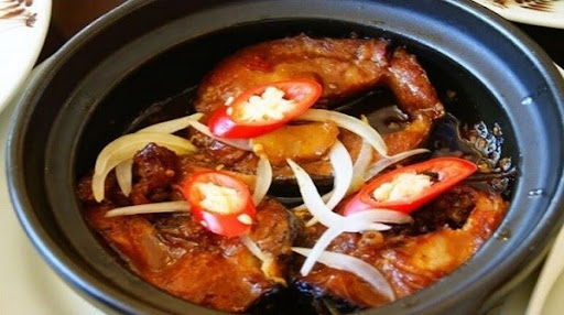 Cá kho là một đặc sản nổi tiếng ở Hà Nam mà ai ăn cũng tấm tắc khen ngon. Cá được kho trong nồi đất cùng thịt mỡ, chanh, khế,… với gia vị và công thức gia truyền. Người dân ở đây chia sẻ phải là loại cá trắm đen ngon mới làm nên được nồi cá kho có hương vị hấp dẫn đến vậy. Mỗi nồi cá có giá khoảng 900.000- 1.000.000 VND.