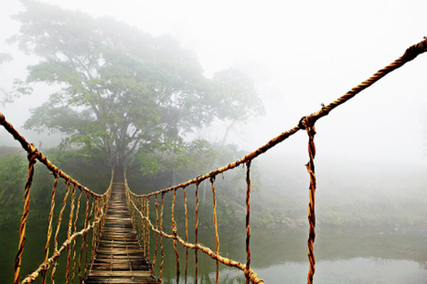 Cây cầu đơn sơ này được làm hoàn toàn từ mây, một loại dây quen thuộc và đã luôn xuất hiện trong hầu hết các vật dụng trong gia đình nơi những người dân sinh sống tại chốn núi rừng Tây Bắc đại ngàn sẽ đem lại cho bạn cảm giác vô cùng thích thú xen lẫn hồi hộp nếu đứng ở đó.