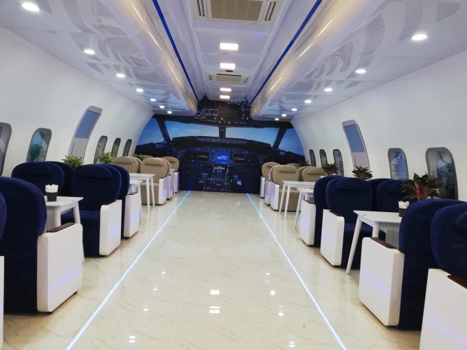 Là quán cafe có thiết kế vô cùng mới lạ và độc đáo.Dylanjet cafe Ninh Bình trông giống như một chiếc máy bay với điểm nhấn chính là bức tường có ô vuông cửa sổ như trên máy bay. Thiết kế nhiều chi tiết hiện đại và tượng trưng khiến vị khách nào bước vào quán cũng muốn “sống ảo” ngay tức khắc.