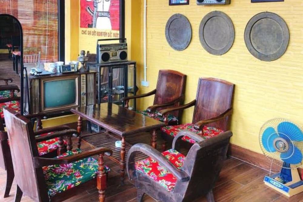 Cafe Mậu Dịch mang phong cách vintage với không gian thấm đẫm màu của vẻ đẹp hoài niệm, nét đẹp của Việt Nam thời cổ xưa mộc mạc, chân chất. Tất cả đồ dùng từ bàn ghế gỗ cổ đến tủ kệ tivi, chiếc radio cũ, khung cửa gỗ xanh thời Pháp thuộc…đều gợi nhớ về những năm tháng xa xưa.